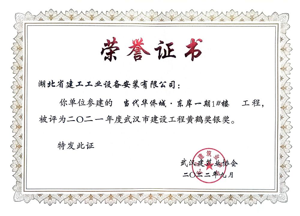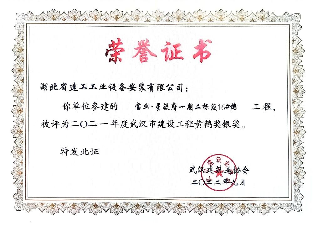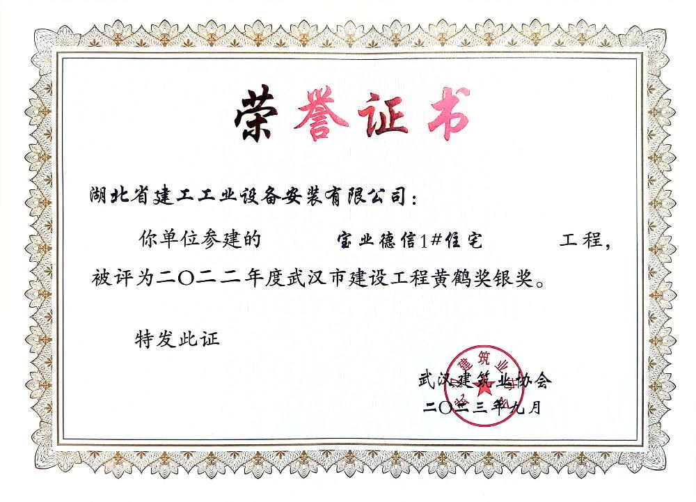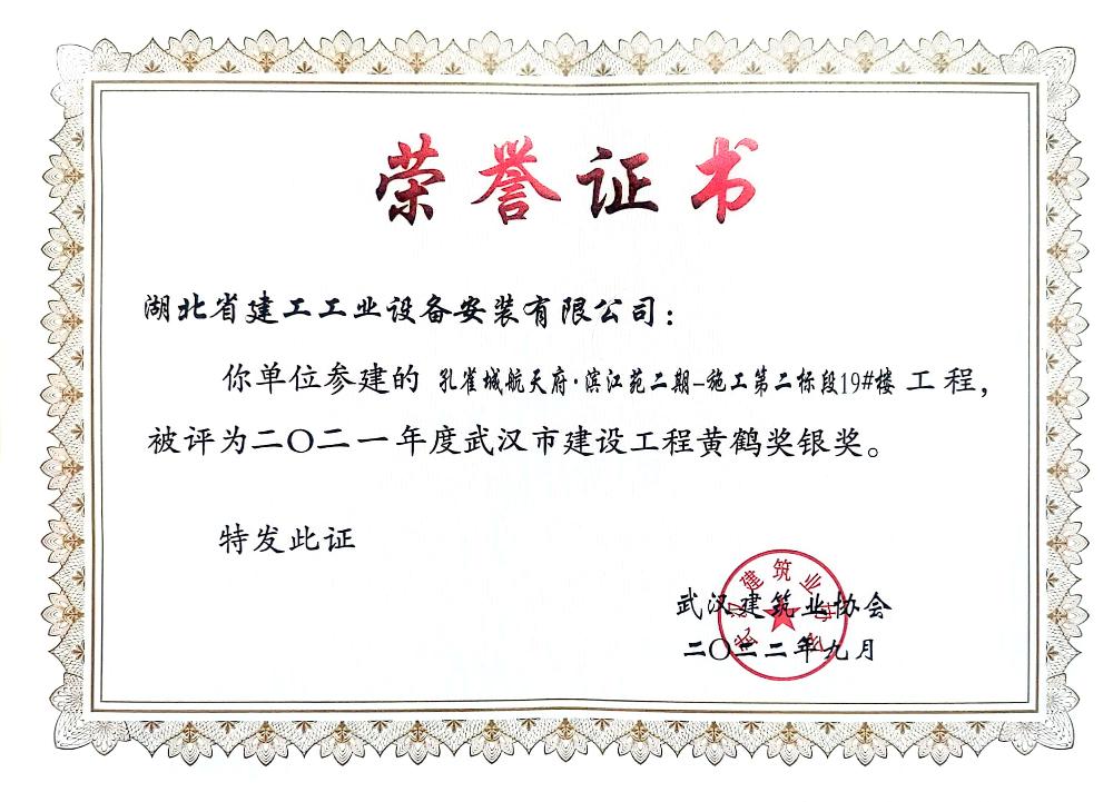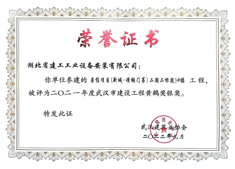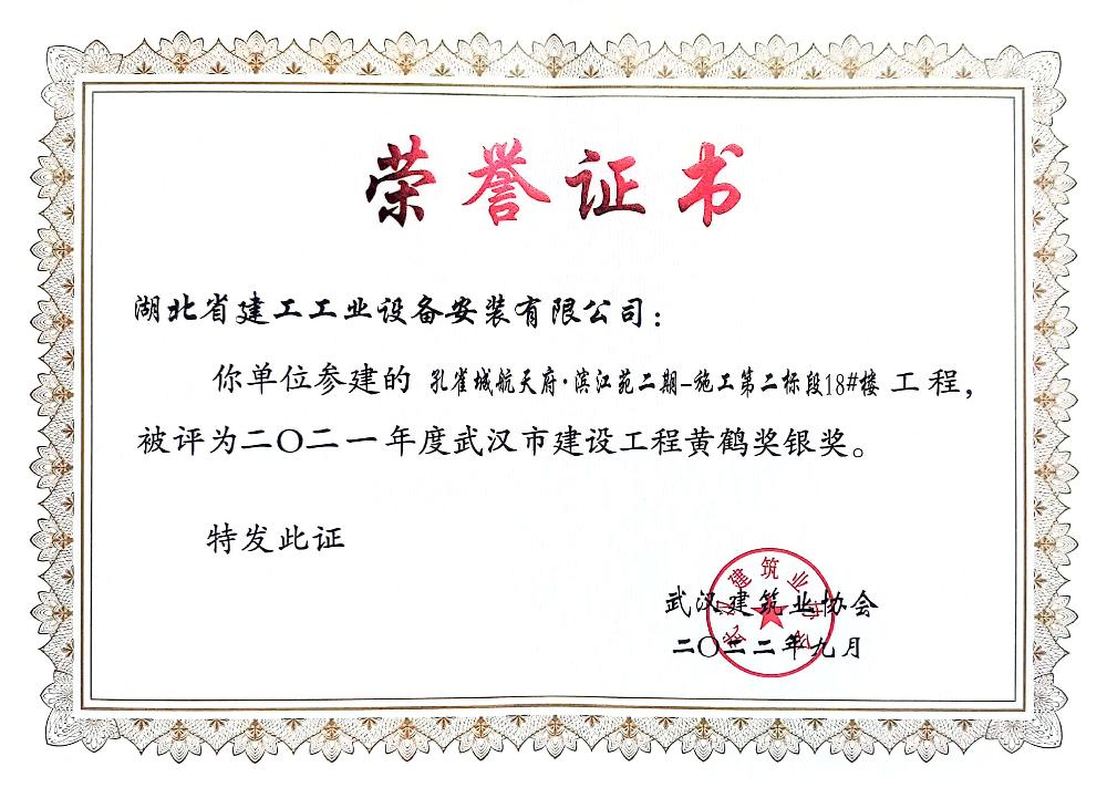 公司成立以來先后被授予“全國(guó)優(yōu)秀施工企業(yè)”、 “全國(guó)安裝行業(yè)先進(jìn)企業(yè)”;多次被評(píng)為“湖北省優(yōu)秀企業(yè)(金鶴獎(jiǎng))”、“湖北省重合同守信用企業(yè)”、“湖北省先進(jìn)建筑企業(yè)”,“武漢地區(qū)優(yōu)秀建筑業(yè)企業(yè)”;連續(xù)多年被授予“全省納稅信用 A 級(jí)納稅人”,武漢地區(qū)建筑業(yè)“AAA 級(jí)信譽(yù)企業(yè)”,“武漢市最具成長(zhǎng)性民營(yíng)建筑企業(yè)”稱號(hào);現(xiàn)為中國(guó)安裝協(xié)會(huì)常務(wù)理事及行業(yè)湖北地區(qū)聯(lián)絡(luò)單位、湖北省建筑業(yè)協(xié)會(huì)理事單位、武漢市建筑業(yè)協(xié)會(huì)理事單位、湖北省消防協(xié)會(huì)理事單位、湖北省市政協(xié)會(huì)理事單位、武漢燃?xì)鈪f(xié)會(huì)理事單位。